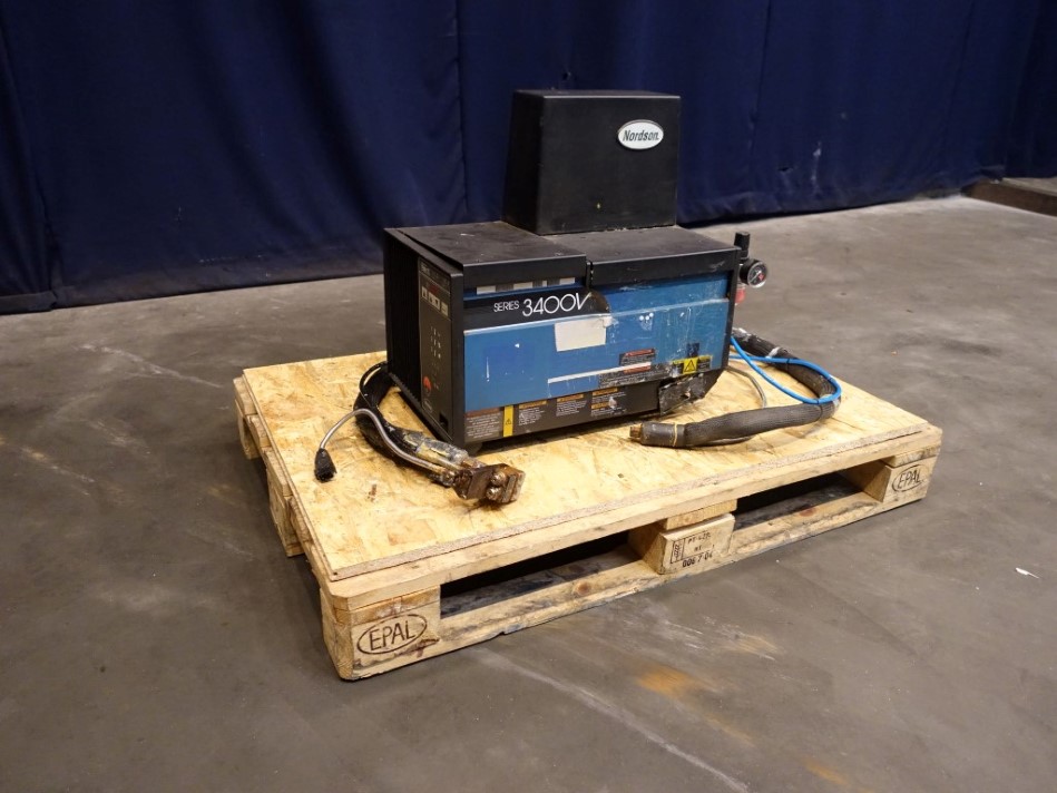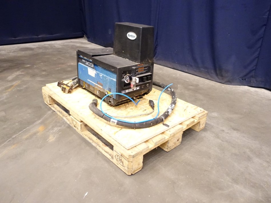 Hotmelt unit with 1 outgoing hoses (2 connections for hoses). 2 glue dosing nozzles. Vista controls.