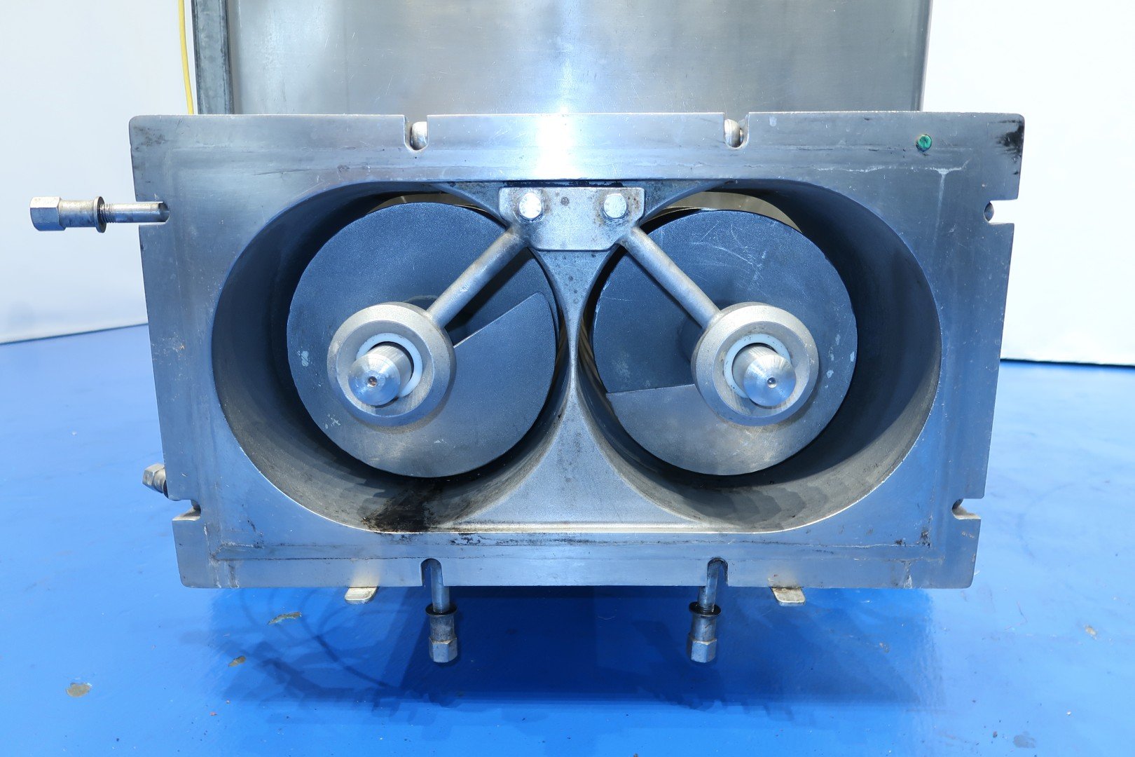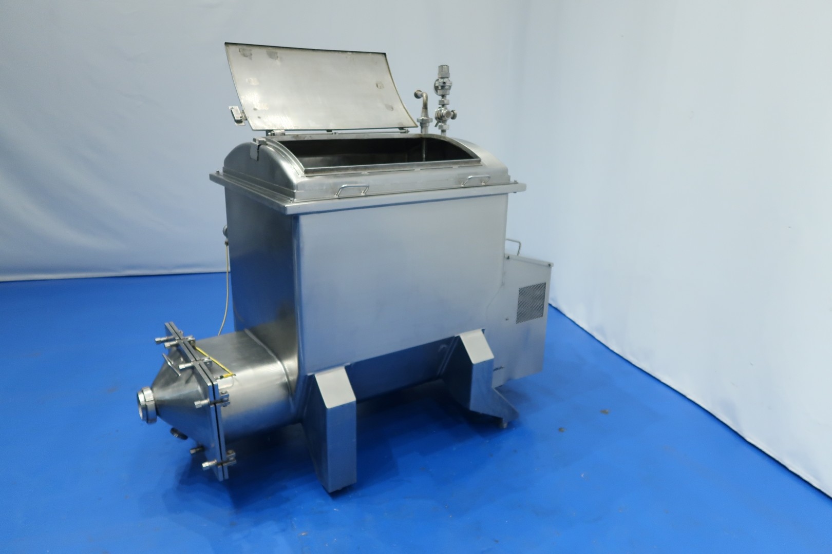Closed Butter silo, with lid. 2 Augers with 1 motor. Main motor: 2,2 kW - 4,75 A - 50 Hz. Lid in top of 80x44 cm with contact sensor. CIP cleanable. Special plate finish on the inside to prevent butter from sticking. Outfeed connection DN100 for butter and 2,5"" for CIP -/-. Manual on/off operation switch with safety sensors. Total outside dimensions: 186x100x168 (lxwxh) cm - weight: 480 kg.