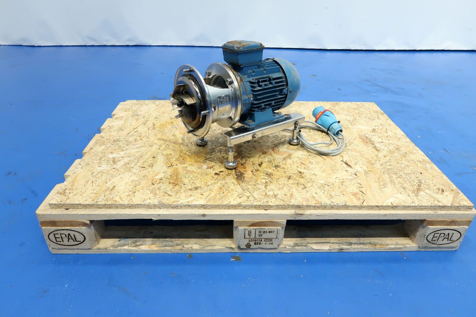 Self priming centrifugal pump. Motor: 2,2 kW - 4,5 A - 2.840 rpm - 50 Hz. Impellor diameter: 110 mm. Connections: (in) DN50 Din / (out) DN50 Din. Dimensions: 59x24x60 (lxwxh) cm - weight: 35 kg.