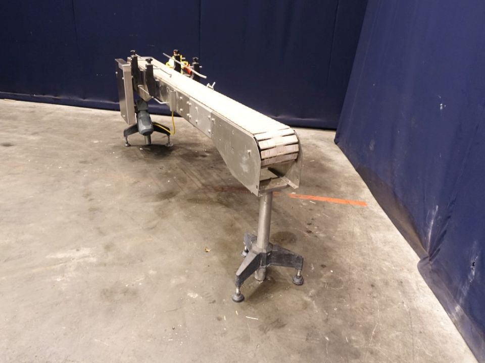 Chain conveyor. Effective chain: 220 x 19 cm. Motor: 0,18 kW n1: 1620 rpm - n2: 83 rpm. Horizontal. Total Dimensions: 230 x 55 x 100 cm.