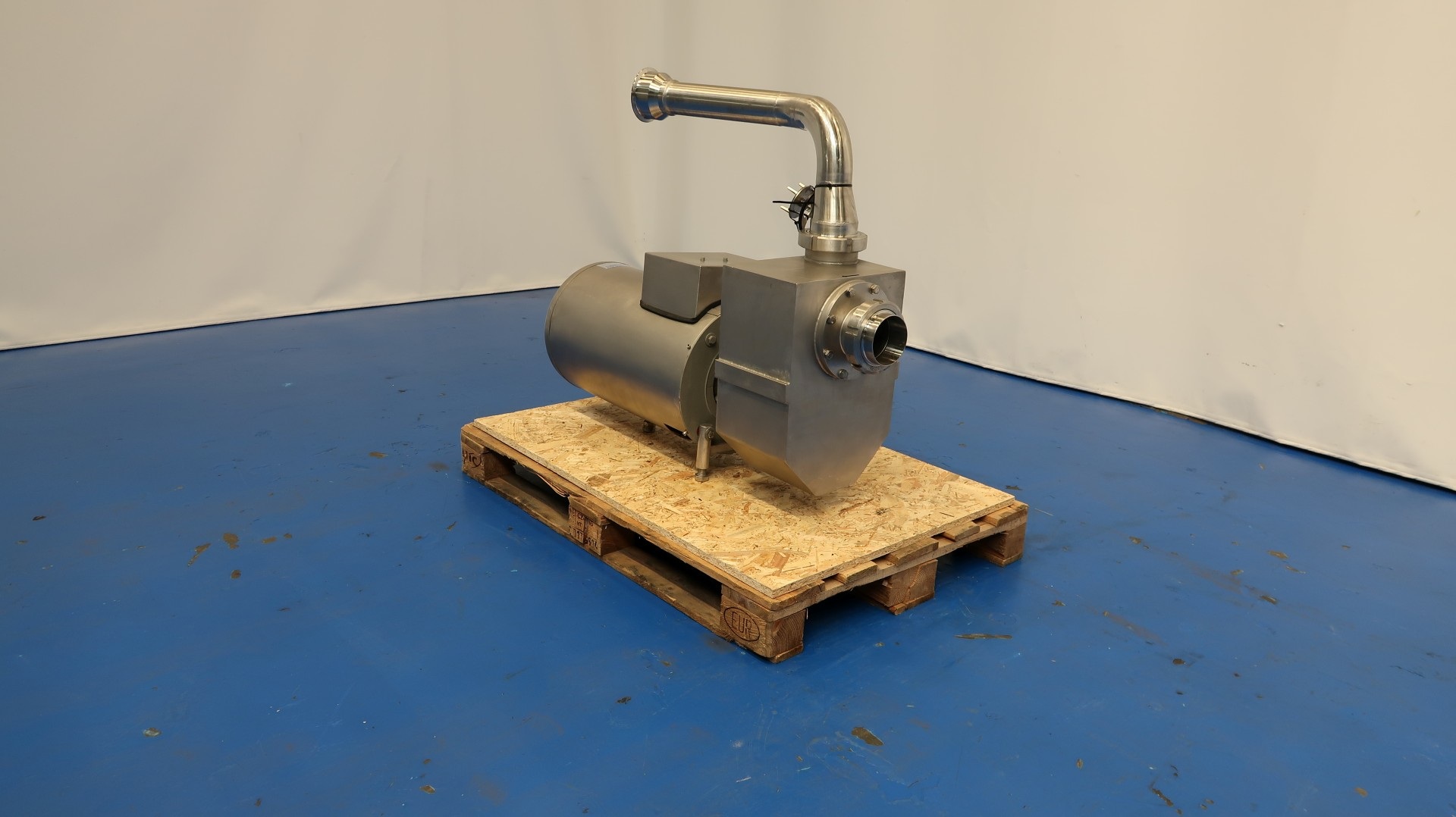 Self priming pump. Motor: 7,5 kW - 16 A - 1.455 rpm - 50 Hz. Impellor diameter: 165 mm. Pressure: 0,6 (90m3) 2,5 bar (45m3). Connections: (in) 116 mm DIN coupling / (out) 116 Try clamp. With non return valve. Dimensions: 100x35x90 (lxwxh) cm - weight: 226 kg.