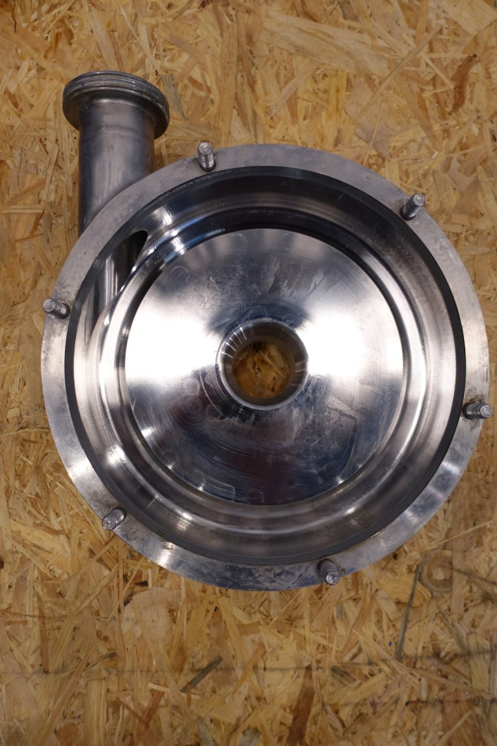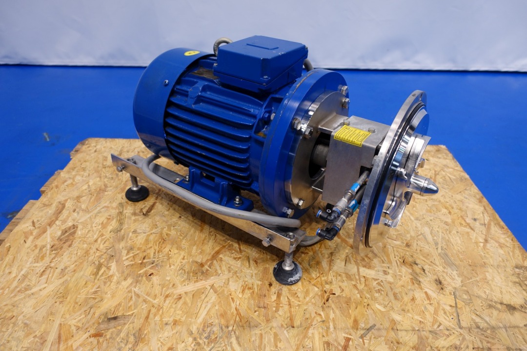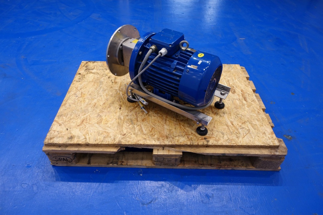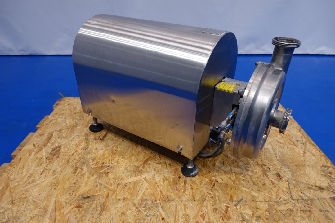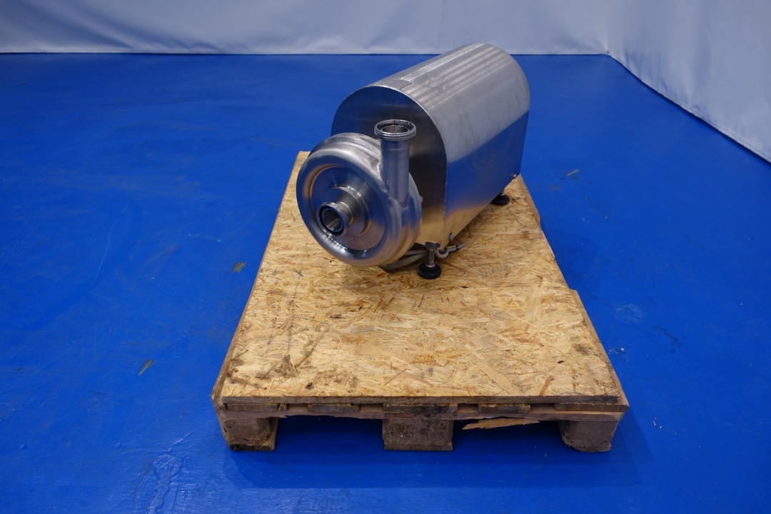 Sanitary centrifugal pump. Version: KAM-CC-2-0550-S1-AF. Power: 5,5 kW - 10,1 A -2.930 rpm - 50 Hz. Impellor diameter: 175 mm. Flushed seal. Capacity at 2,5bar 12,000ltr/h at 3,8bar 8,000ltr/h. Connections In 2,5" Din - Out 2,5" Din. Total dimensions: (lxwxh) 73x31x44 cm - weight: 152 kg.