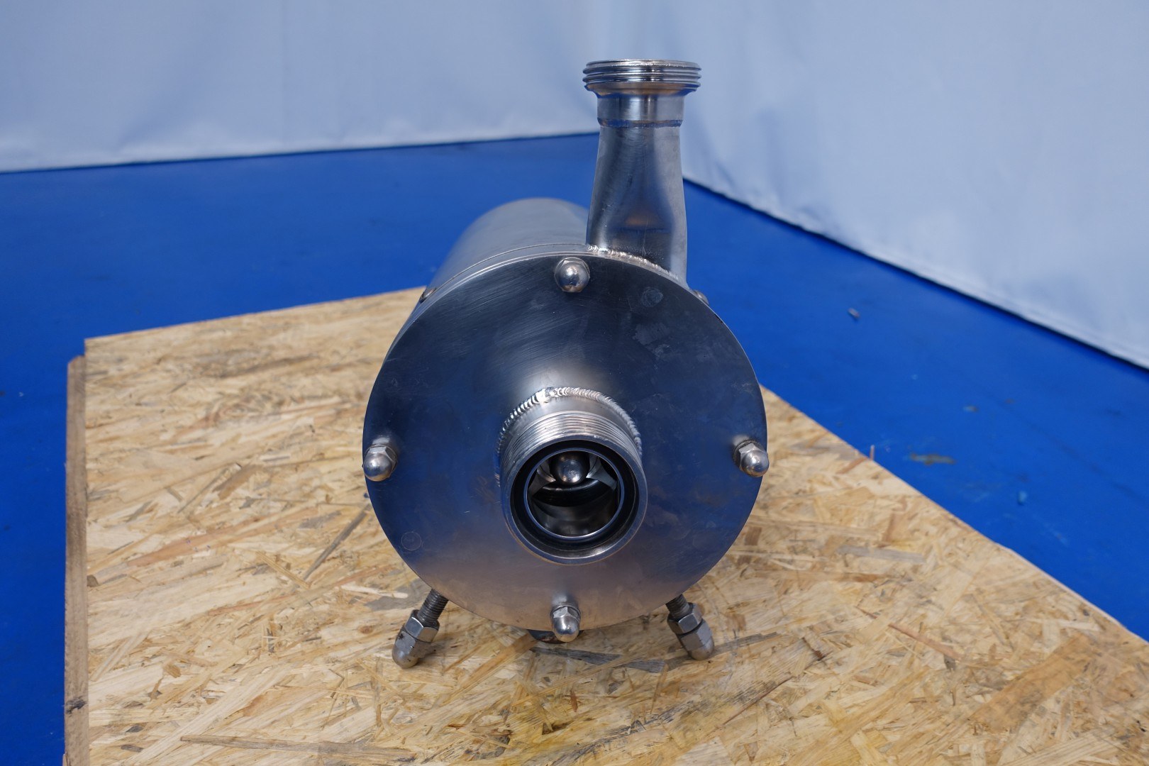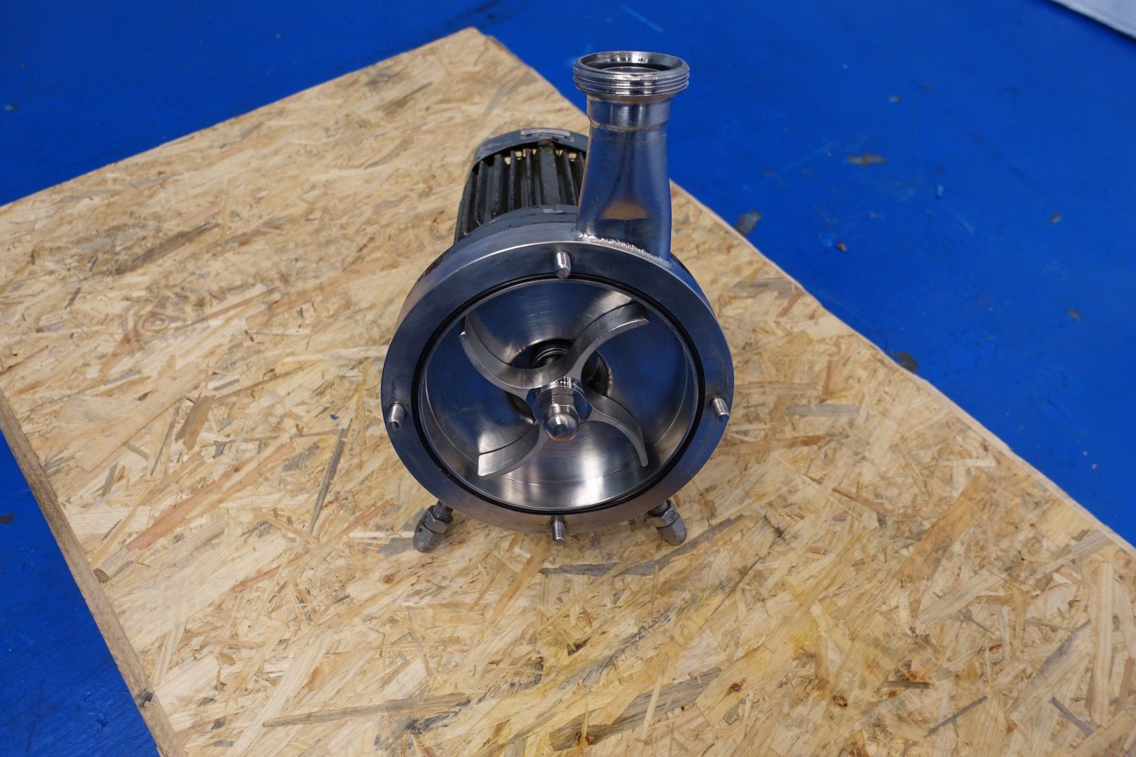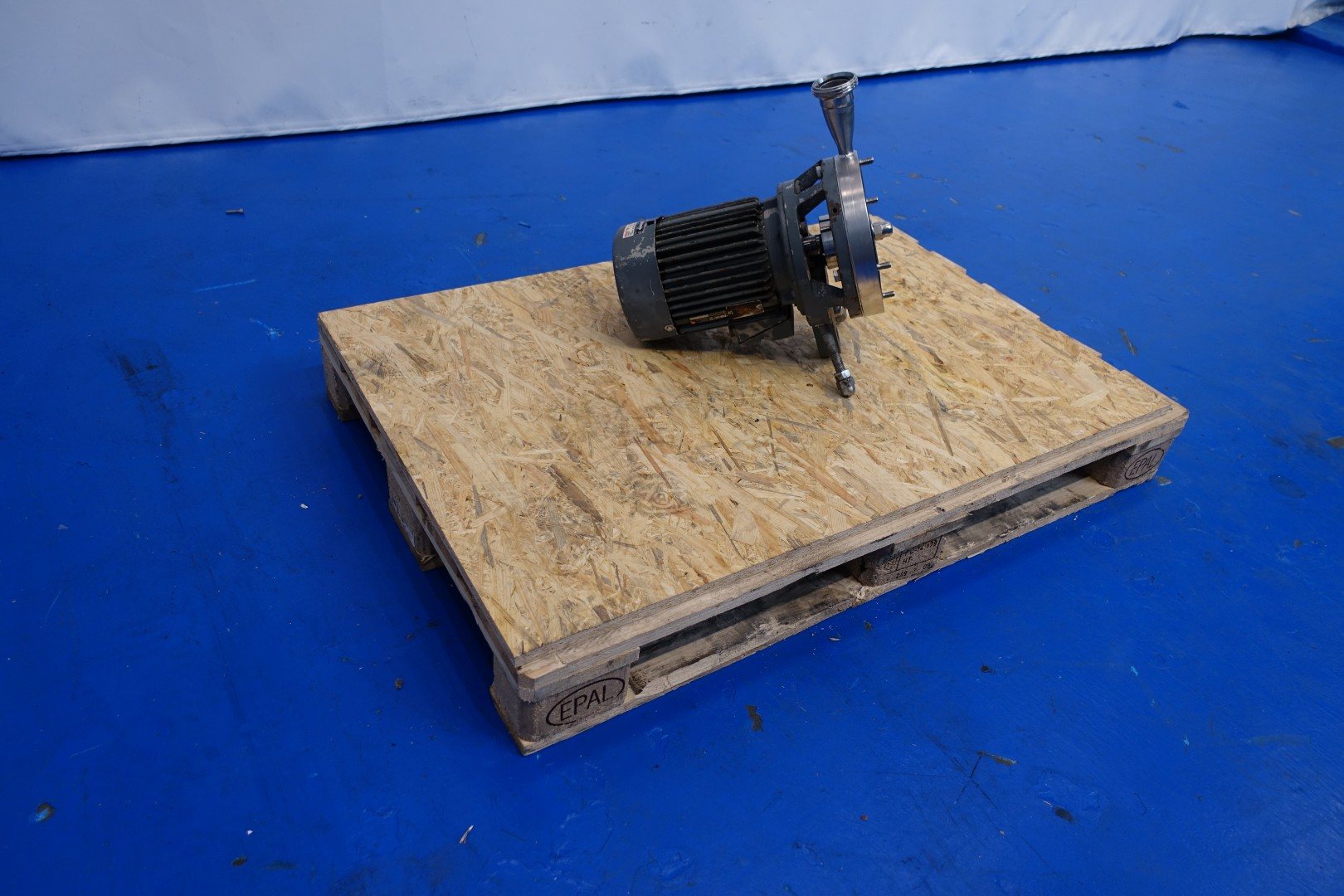 Sanitary centrifugal pump. Current motor 3,0 kW - 6,25 A - 50 Hz - 2.850 rpm. Impellor diameter 170 mm. Pressure 4 bar Connections: (In) DN65 Din / (Out) DN50 Din. Total dimensions: 55x24x44 (lxwxh) cm - weight: 72 kg.