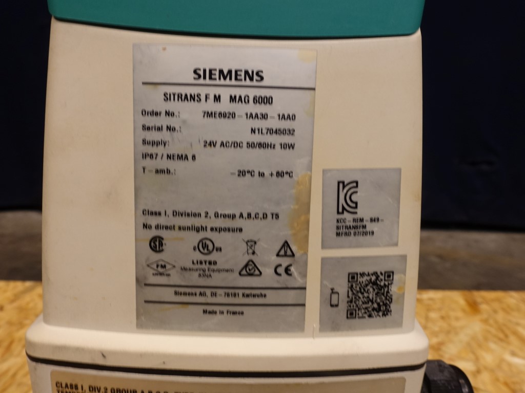 Magnetic flow transmitter. Connections: DN50. Electronic head/display, Siemens Sitrans F M MAG 6000.