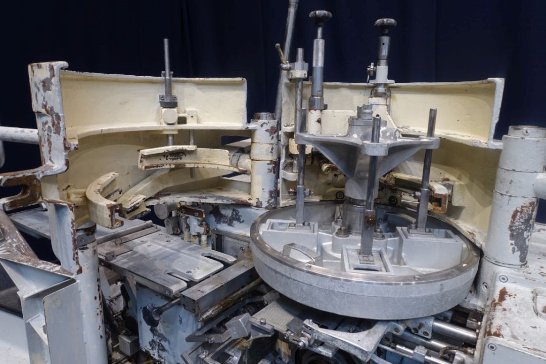 Fully automatic filling and wrapping machine for butter in aluminum foil or parchment paper. Feeding system by direct connection (piston missing). Outfeed conveyor. Incomplete format set size ± 115x75 mm. No photocell for paper correction or date coder. Control panel with relay control, poor condition. Min - max weight adjustble by changing format set 100 - 500 gram. Total dimensions: 310 x 180 x 200 cm. Weight: 1.235 kg.