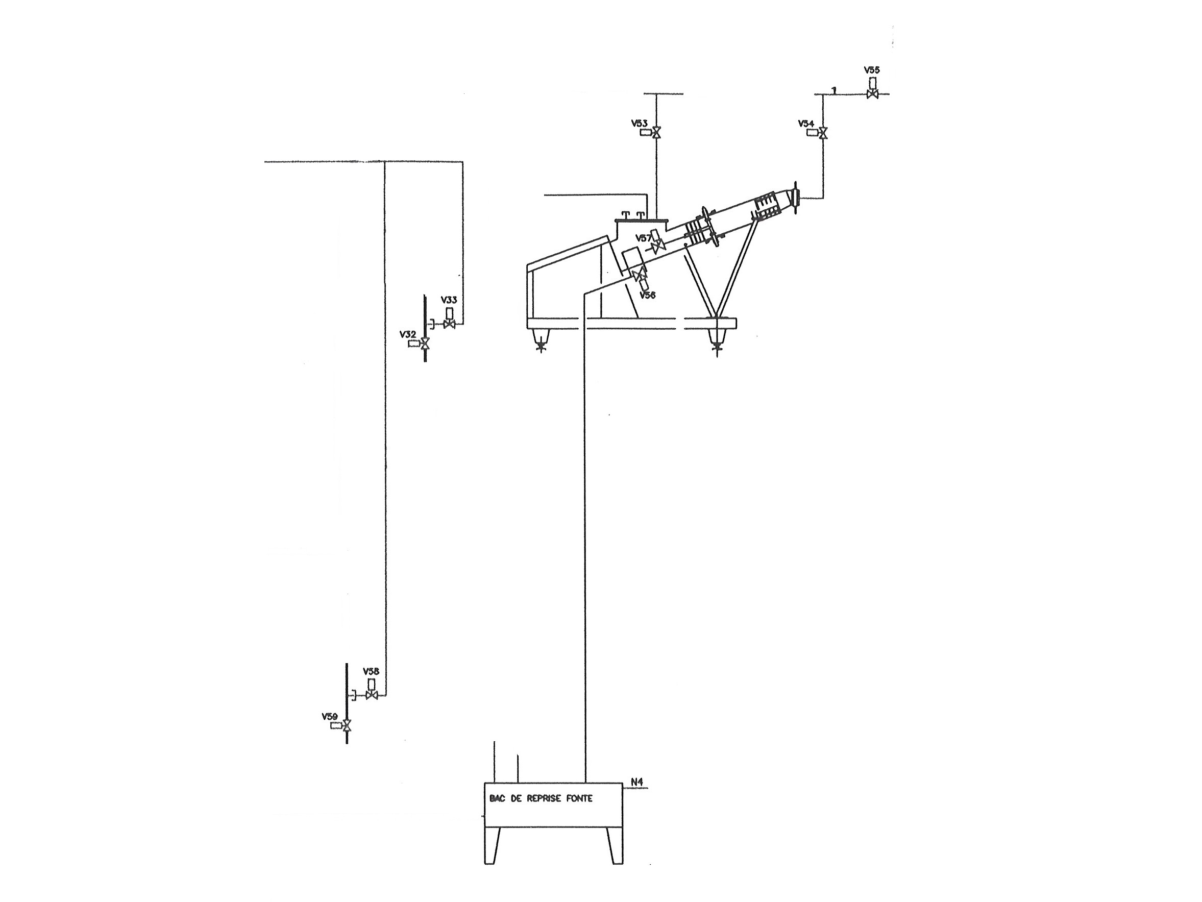 Butter mixing and kneading machine with 2 sections. Section 1: for vacuum, section 2: for injection of culture or water. Feeding of the machine by a butter reworker. This machine has the possibility of precisely adjusting the moisture content by injection culture or brine water, or blending 2 different butters from 2 different reworkers. Vacuum working to reduce the air content. Useable for working / softening and blending any product with a consistency similar to that of butter. Complete with all piping, framework and round, open return vat.