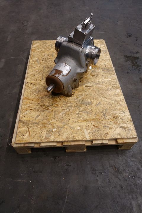 Lobbe pump head with 1 x gummi lobe. Positive displacement pump. Diameter lobbes: 190 mm. Used on butter. No drive work. Connections: (In) 4"SMS / (Out) 4" SMS. Dimensions: 33 x 50 x 47 cm. Weigth 127 kg.