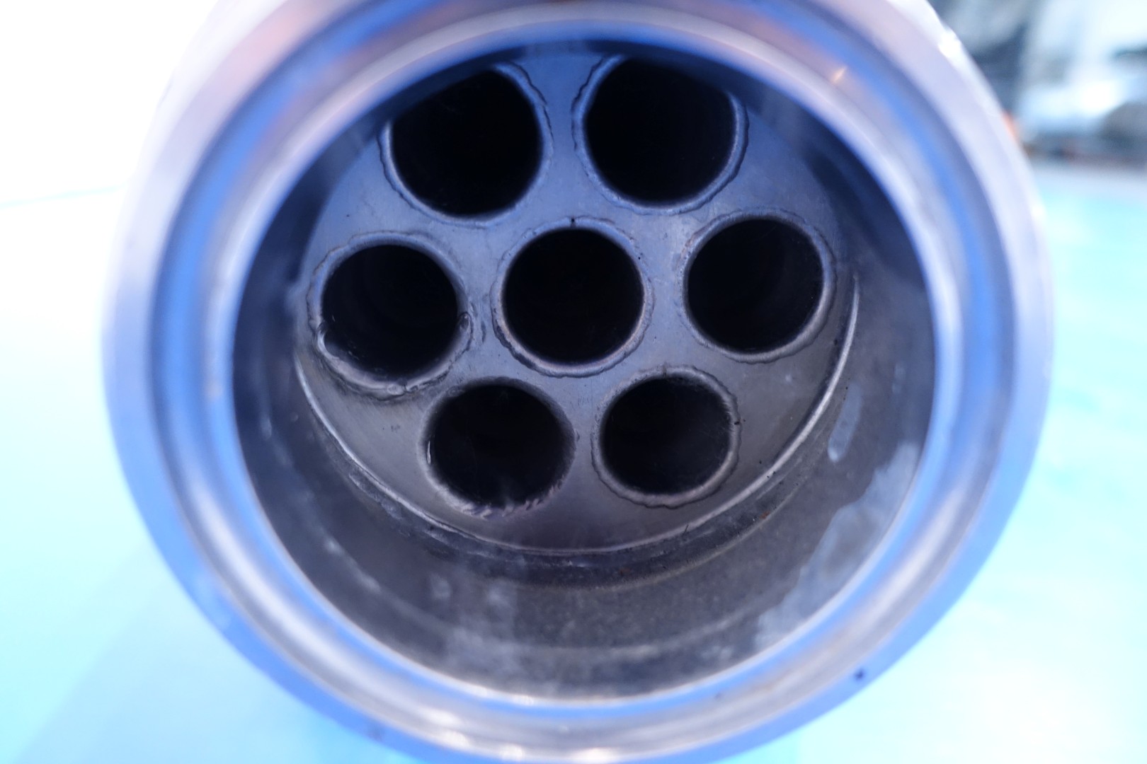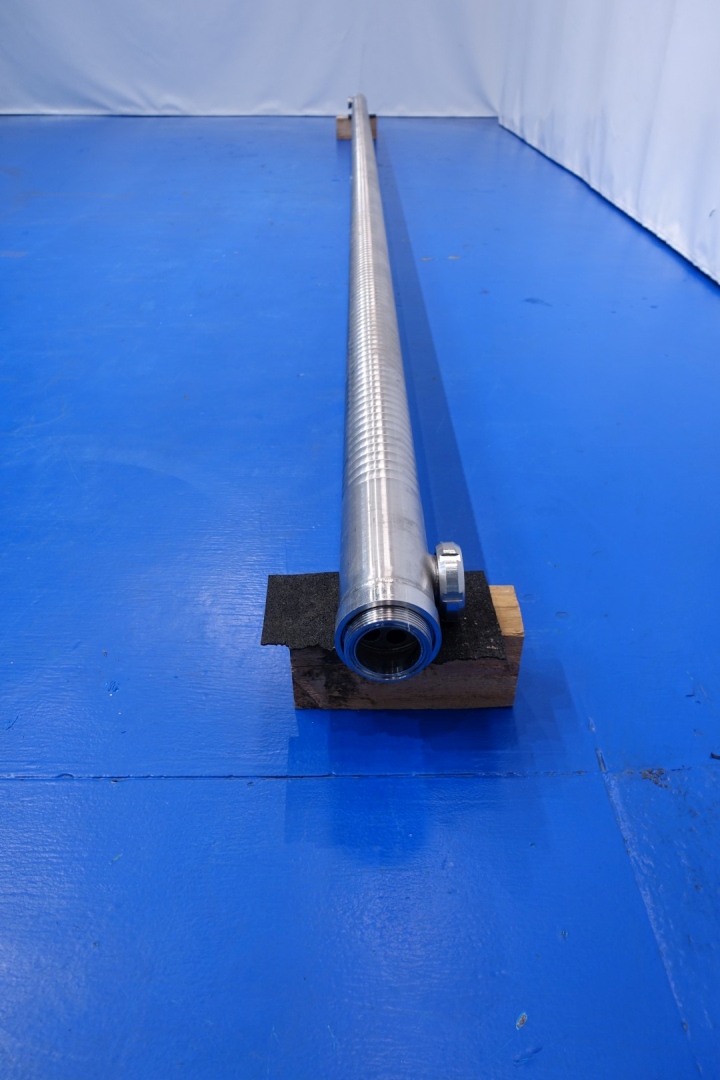 Tube heat exchanger, straight design multitube, length: 6mtr, 7 inner tubes with diameter 22 mm, outer tube coagurated. Outer tube diameter 113 mm. Capacity: 0,41 m2x7=2,9m2. With connections product in/out DN 80 SMS - jacket in/out 2,5" SMS. Total dimensions: 604x15x15 (lxwxh) - weight: 67 kg.