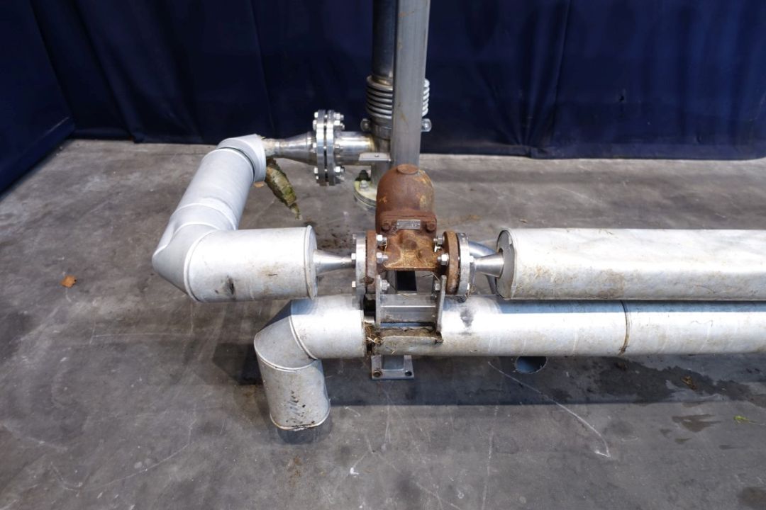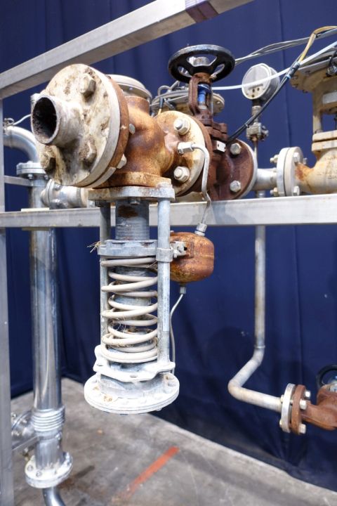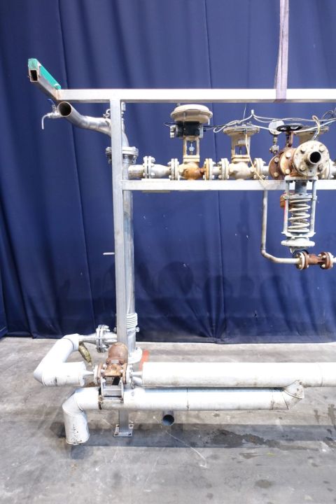 Hotwater set with tubular heat exchanger, steam valve (Samson) and piping. Pressure: shell 0-15 bar, tubes 0-40 bar. Temperature: shell 0-180 °C, tubes 0-180 °C. Volume: shell 9,3 liter, tubes 6,1 liter.