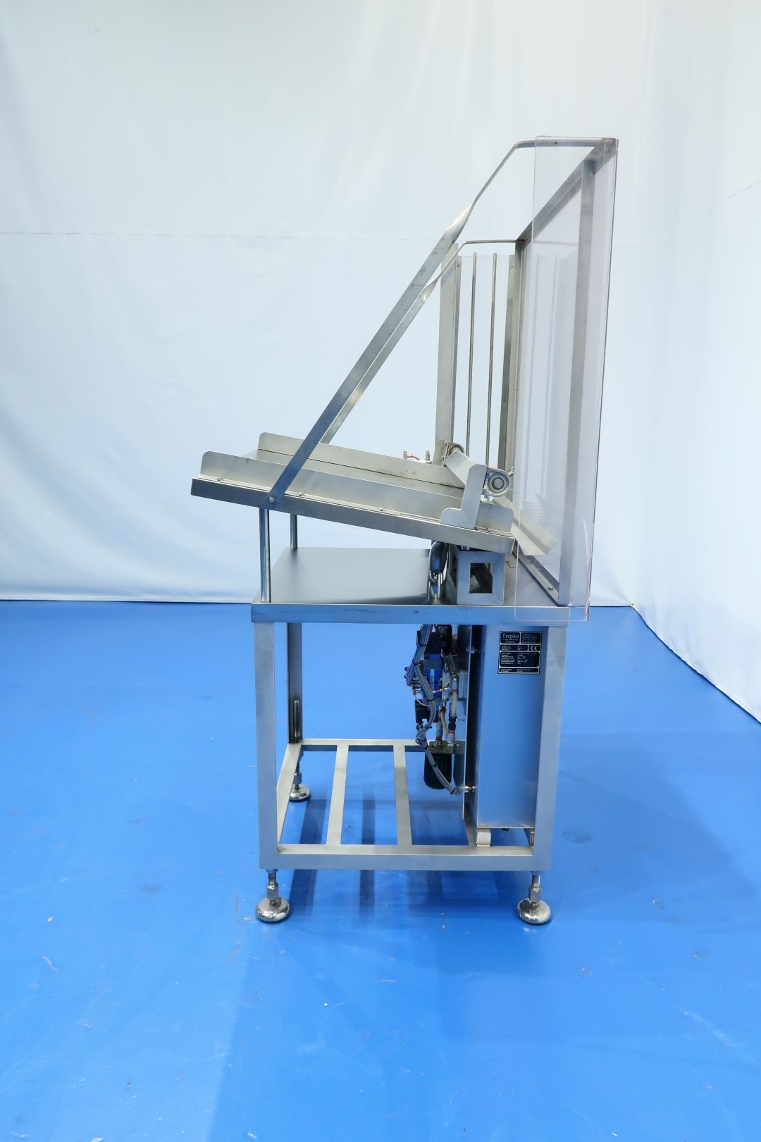 Cup destacking unit for preformed cups with a diameter of 95 mm. Single head. Pneumatic. On stainless steel frame with adjustable feet. Motor: 0,09 kW. Control panel with Siemens S7-200 PLC. Total dimensions: 135x100x196 (lxwxh) cm - weight: 205 kg.