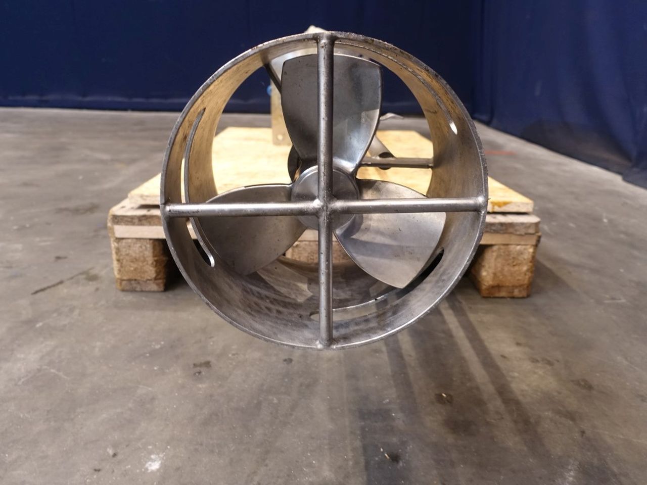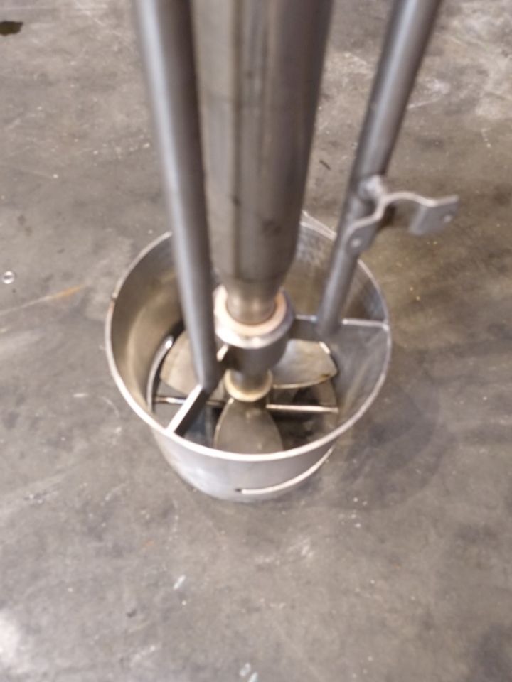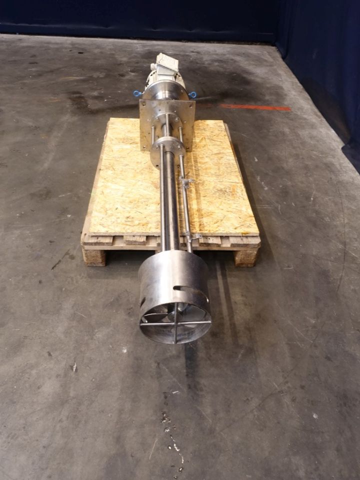 Propellor agitator, 5,5 kW - 10.8 A - 1455 rpm. Shaft length: 130 cm 1 propellor on the shaft, propellor diameter: 20 cm, 3 blades. Total dimensions: 30 x 40 x 200 cm.
