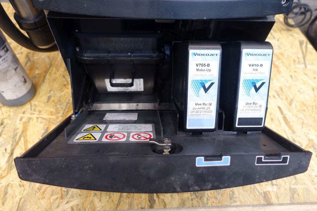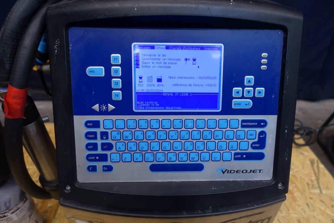 Continous inktjet printer. Used for coding 250 gram butterpacks. Last used in year: 2024 in a French speaking country. Power: 3 A - 120 W - 50 Hz - 100-120V. Dimensions: 42 x 30 x 82 cm. Weigth 57 kg's. Has been running in complete line between Benhil (STN15333) and S&F Packer (STN15336).