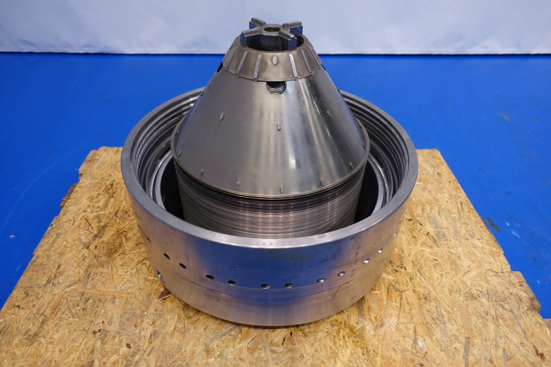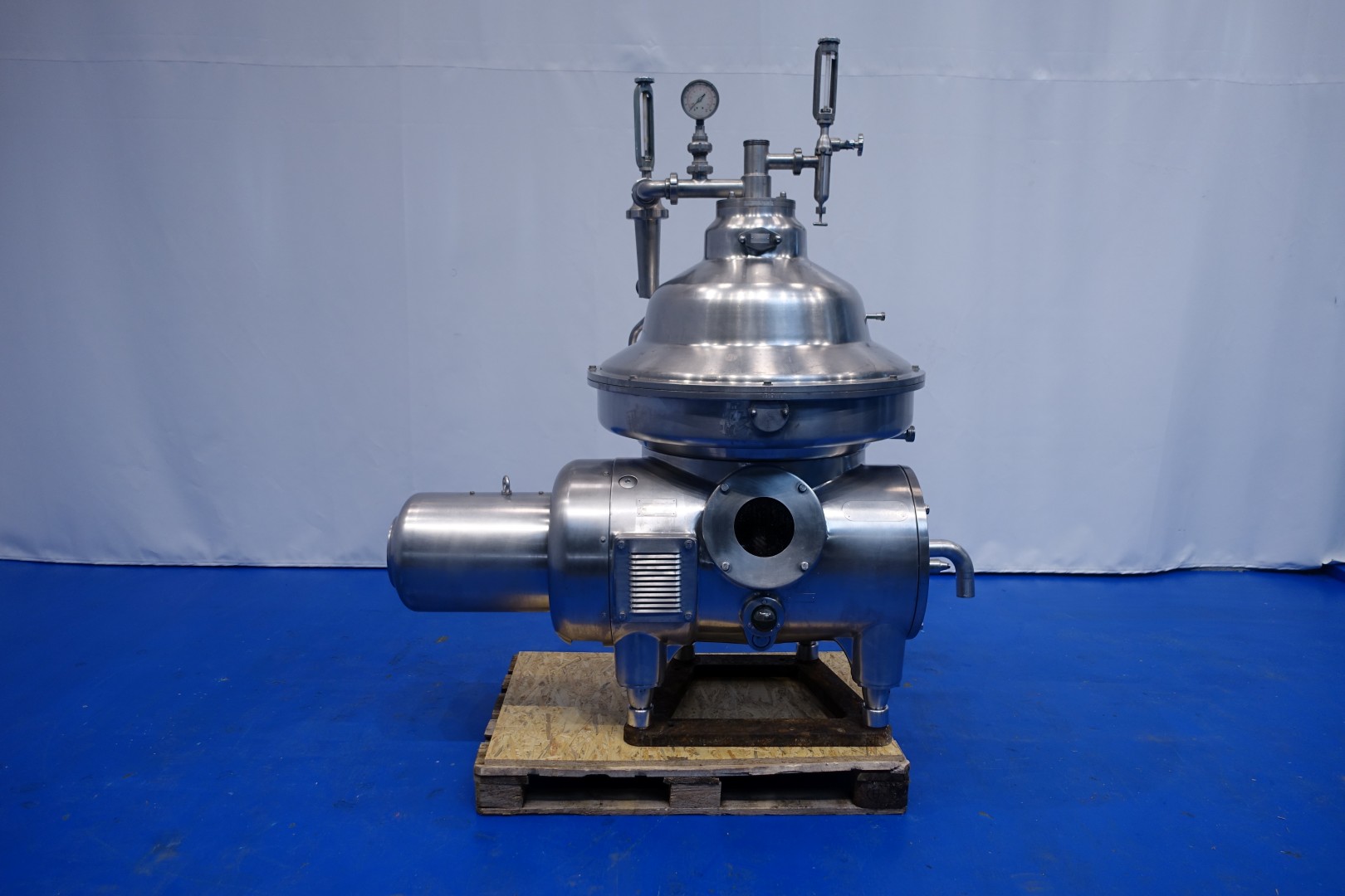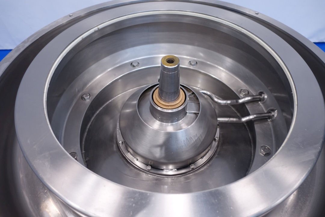 Milk or cream skimmer, self cleaning. Including bowl, motor cover, base foundation frame, flow indicator and pressure manometer outgoing milk. Flowindicator and manual flow regulation valve for cream. Motor 22,0 kW - 50 Hz. Bowl speed 5.920 rpm - solids 1,1 kg/dm3. Liquid clutch. Set of needed tools with ring key and. Free standing control panel with standard Westfalia controls. Documentation available (in French).