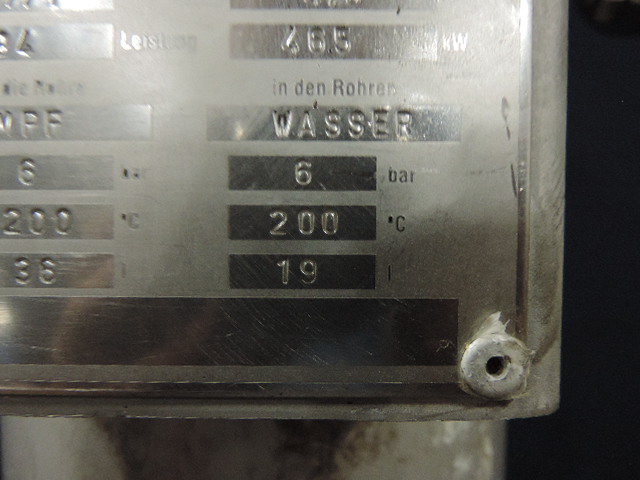 Water= 6barr/208C/19 L - Steam= 6barr/208C/36L - 46,5kW